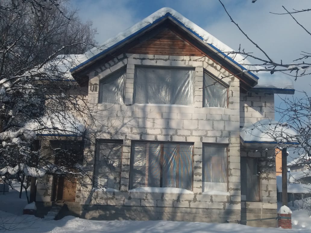 Во всех помещения есть окна (не остеклены). Дом без внешней и внутренней отделки.