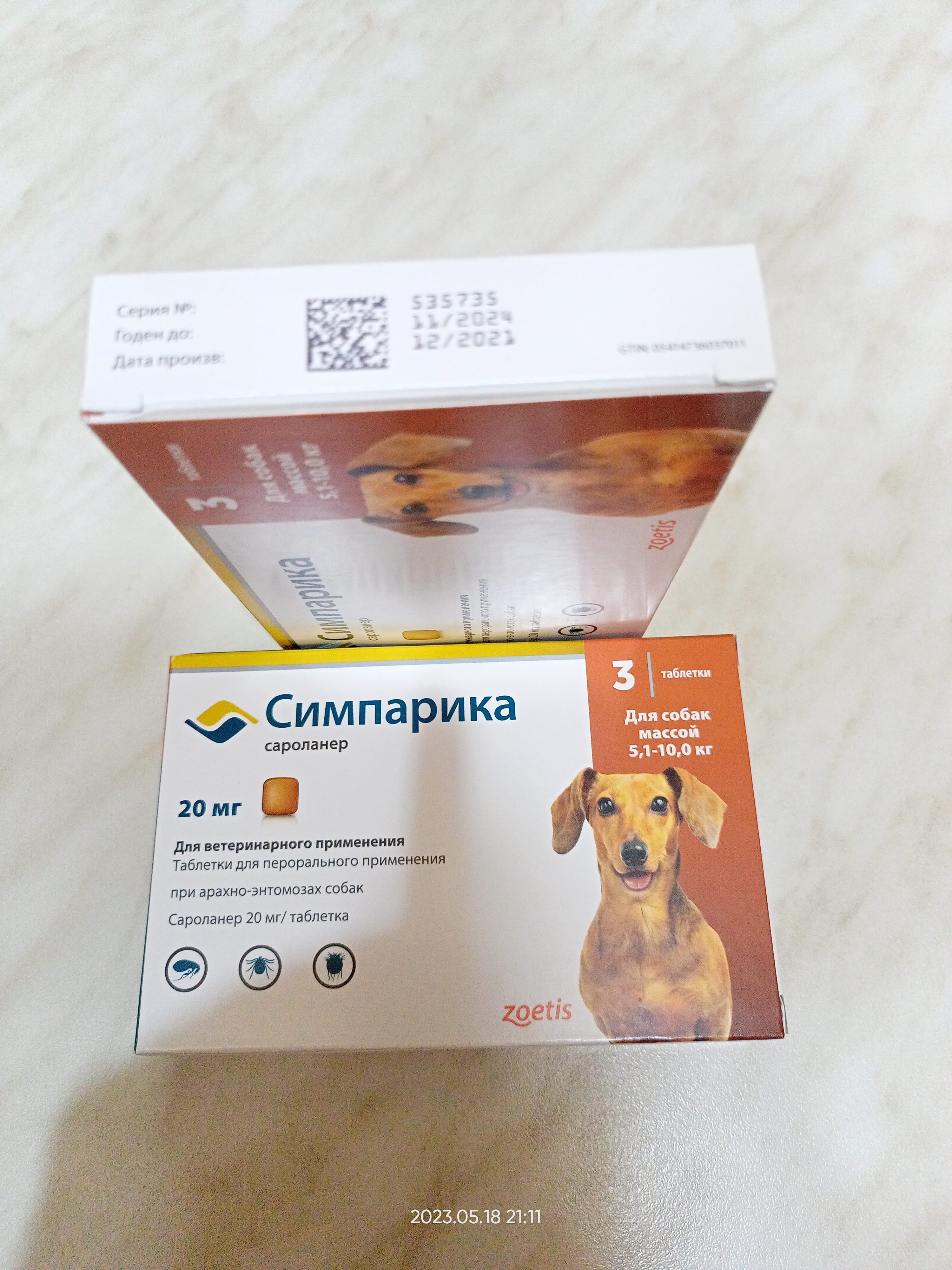 Симпарика 20 мг (5,1-10 кг). - 2500 за упаковку. Годен до 11/24.