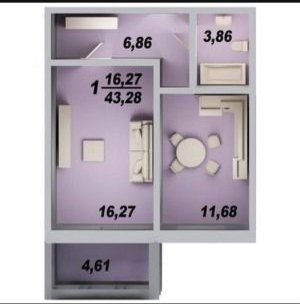 1 комната, есть гардеробная и лоджия, общая площадь 43 м2, стоимость 7 700 000 ₽. По всем вопросам пишите в ЛС.