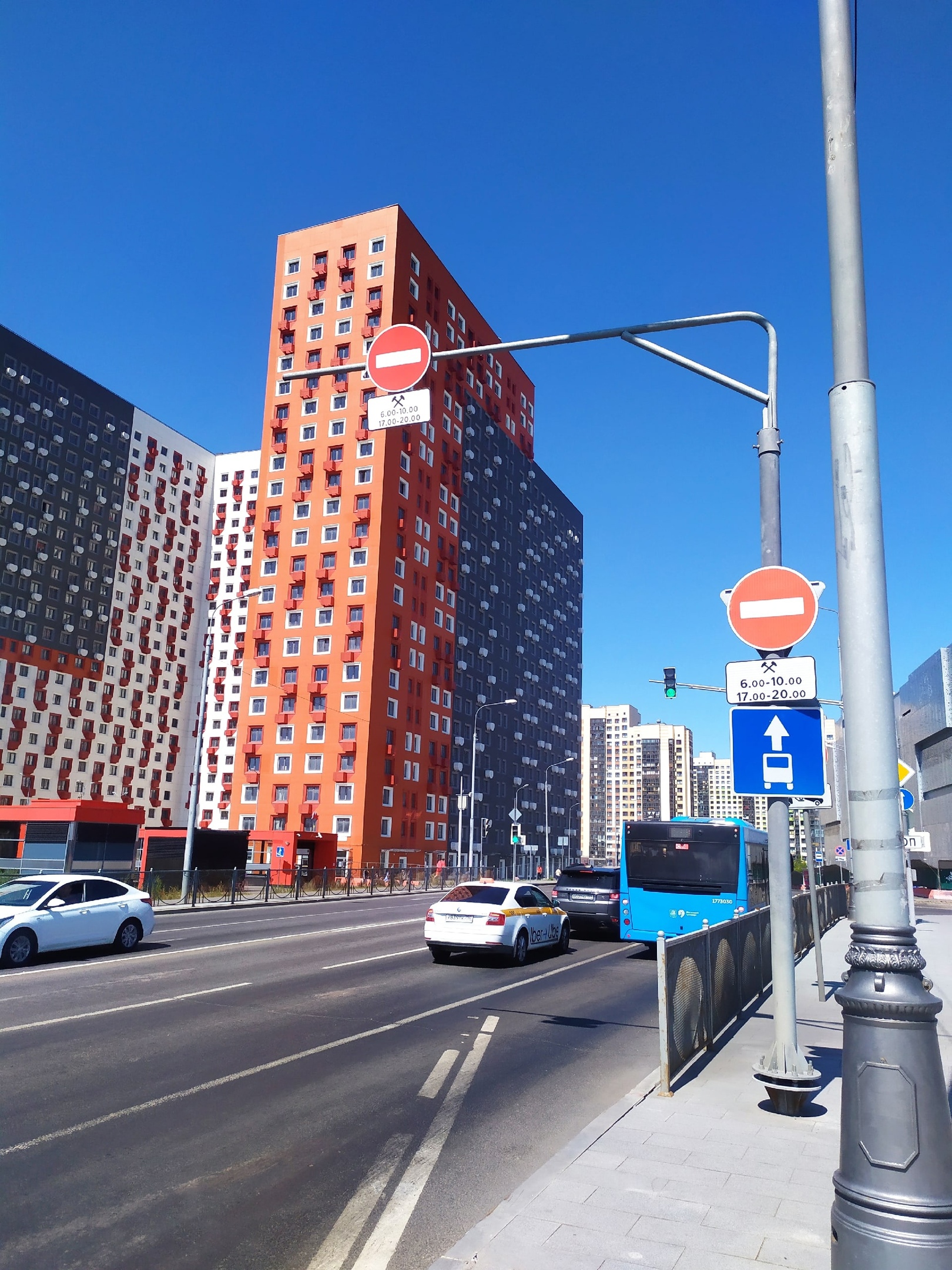под мостом висит знак кирпич с временными интервалами (при этом достаточно странными) и дополняется тем что действие знака начинается через 50 метров. Далее кирпич дублируется но дополняется знаком "автобусная полоса". Это только по автобусной полосе нельзя ездить в указанный интервал времени или вообще туда заезжать нельзя по этой дороге?