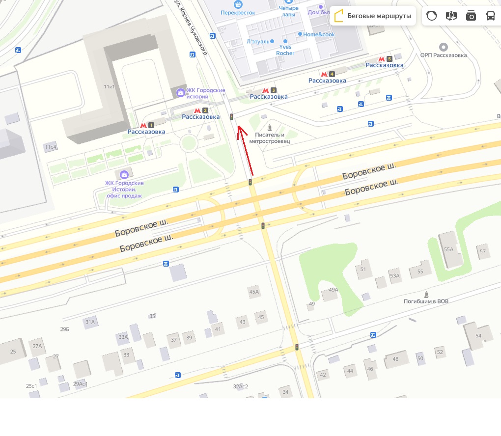 Всем привет, кто-то может объяснить как организовано движение у метро Рассказовки, если ехать из Апрелевки и двигаться по стрелке (см. картинку)